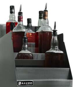 • Steps are designed to hold various size bottles to accommodate each bartenders specific needs.